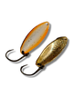 Den ene halvdel af skeen har flere sekskantede snit, der skaber en unik glitrende effekt, når den føres.